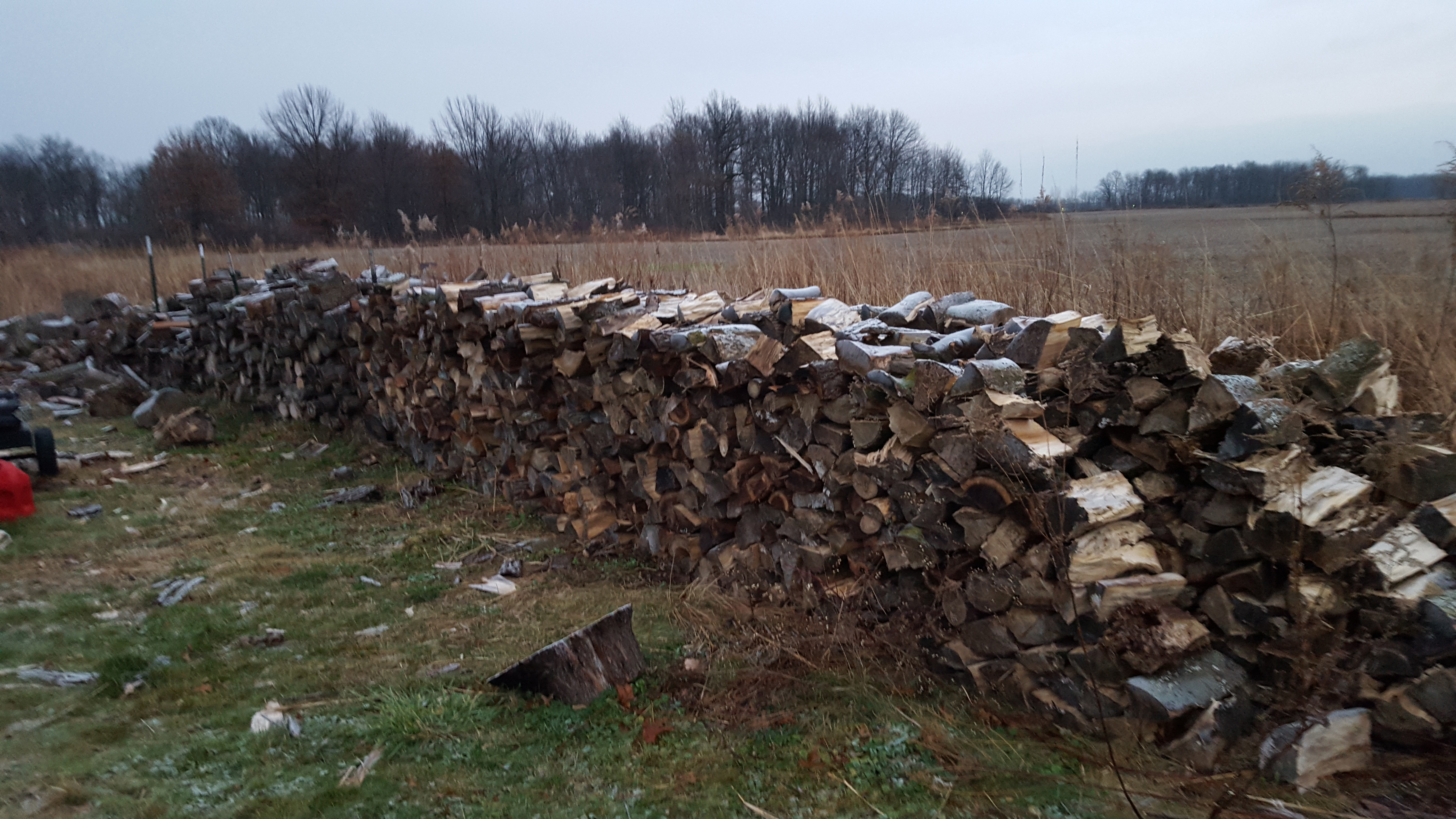 We cut and burn our own wood to heat our house in the winter, and while it seems like we go through a large amount of wood it is nothing compared to what Colonial Americans would have used. Most Colonial homes would have needed at least 40 cords of wood for heating and cooking over the course of a year. A cord of wood is 128 cubic feet or roughly a stack of wood 4 feet wide, 4 feet high, and 8 feet long. Below is a picture of the Stevenson farm woodpile.