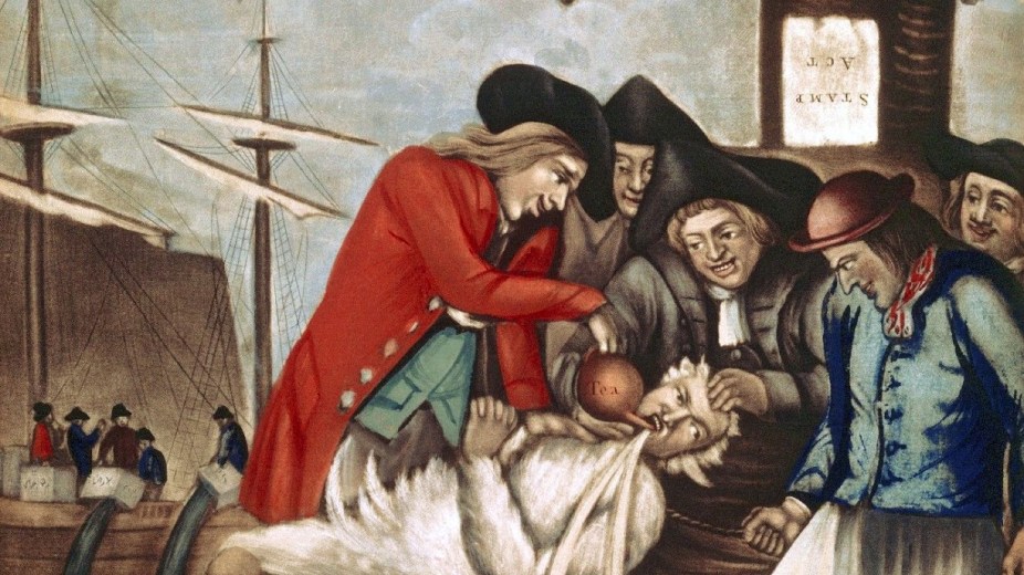 With a throbbing head, Hewes went to see Dr. Joseph Warren, a physician and patriot leader. Dr. Warren told Hewes that he should report the attack and seek a warrant for Malcom’s arrest. Before Hewes could ever get a warrant, word had spread quickly about Malcom’s attack. An angry mob had gathered outside Malcom’s house on Cross Street. Malcom arrogantly baited the crowd through an upstairs window, claiming that the British Governor of Massachusetts would pay him twenty pounds sterling for every Yankee he killed. The mob grew violent and grabbed ladders to climb up to Malcom’s window. Men climbed the ladders, punched through glass windows, jumped into the house, took Malcom’s sword, and drug him out into the street. The mob grabbed a barrel of tar from a nearby wharf, heated it over a bonfire, and loaded Malcom into a cart. They took Malcom to the front of the Customs House and Old State House, the same place where the Boston Massacre had occurred four years earlier. In the bitter cold night the mob stripped off Malcom’s clothes and began to pour the scalding hot tar on his body. Once coated in hot sticky tar, they doused him with feathers.