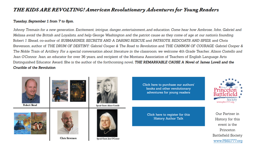 Join children historical fiction authors Chris Stevenson and Robert Skead as they discuss their books along with teachers who love history.